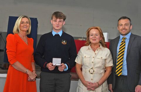 Alex Healy was named Student of the Year at St Muredach's College annual awards presentation night. He is pictured with, from left: vice-principal Patricia Walkin, Ann Healy and principal Wayne Walsh. Picture: John O'Grady