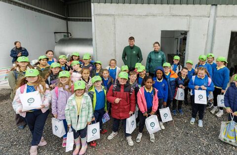 Pupils from Scoil Íosa, Ballina, on a recent visit to the farm of Christopher Tuffy in Dromore West. Picture: James Connolly