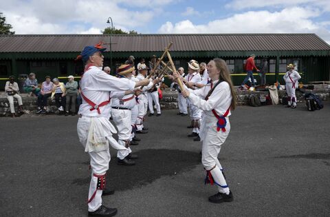 Morris Dancing troupe, ‘The Ancient Men’, perform at Kiltimagh Sculpture Park on Thursday, July 31st. Picture: John Corless