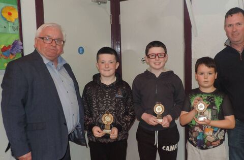 At the Good Friday Quiz which was held in Kilmovee Community Centre were the National School winners. Pictured from left; Cllr John Caulfield, Eoghan Duffy, Darragh Egan, Kieran Sweeney and Gerrard Duffy. Cllr Caulfield acted as quiz master and Gerrard Duffy Quiz co-ordinator. Pic James Hunt Photography.