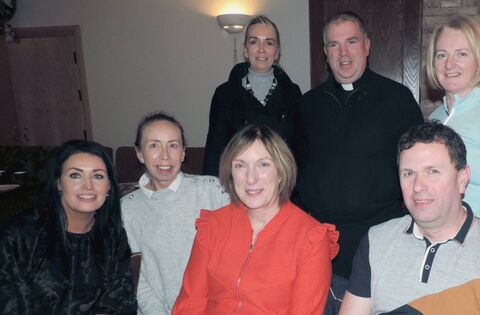 Attening the football teams presentation night in the Brusna Inn were back l/r Paula Egan, Fr Paul Kivlihan, and Deirdre Frain. Front l/r Joanne Regan, Mary Moynihan, Noreen and Gerald Duffy. Pic James Hunt Photography.
