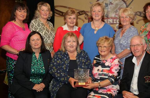 At Balla Golf Club Presidents Day, presentation evening held at Mannions Bar Balla, pictured were winners in the Ladies Section were: left to right: Front: Lady Captain Caroline Bourke, Patricia Conwell (winner), Club President Mary Jo Cannon, Club Captain John Walsh (Mens Section Winner). Back: Mary B O'Donnell (3rd), Mary Gillard (Cat 2), Helen Byrne (5th), Breege Walsh (Cat 3), Mary Conlon (2nd), Kay Foy (4th). Missing was Ann Marie Doherty (Gross Winner) and Pat Dillon (Past Presidents Prize winner). Pic:Trish Forde