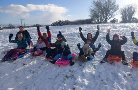 Youngsters at Riverside Drive in Ballina enjoying the snow last Thursday. Picture: Hazel Kearney