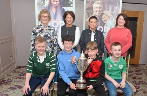 The quiz team from the Quay National School in Ballina are pictured after winning the U-13 category in the Credit Union Chapter School Quiz held in Westport Woods Hotel earlier this year. The team has now gone on to claim the All-Ireland title. Back row, from left: Anne Treacy, Pauline Ryan, CEO Westport Credit Union; Joan Jennings, Sheila Langan, Westport Credit Union. Front row: Iarla Hannan, Gareth Doyle, Michael Duffy, Cian Gillispie. Picture: Frank Dolan
