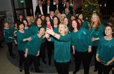Joan Loftus takes a selfie of the Moy Singers at their Carols by Candlelight Christmas Concert Extravaganza for Ballina 2023 in the Great National Hotel Ballina. Picture: John O'Grady