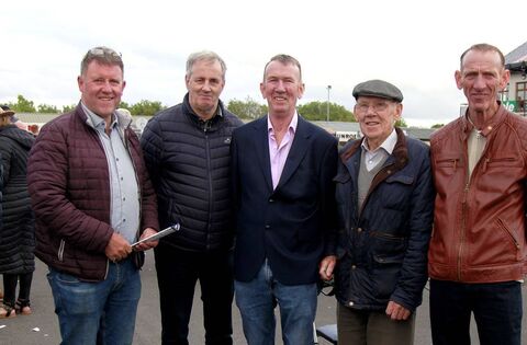 Enjoying Ballinrobe Races were, from left: Frank Keane (Cornfield), Brendan Foy (Belcarra), Michael Brady (Luton), Charlie Kerrigan (Ballyheane) and Paul Brady (Luton). Picture: Trish Forde