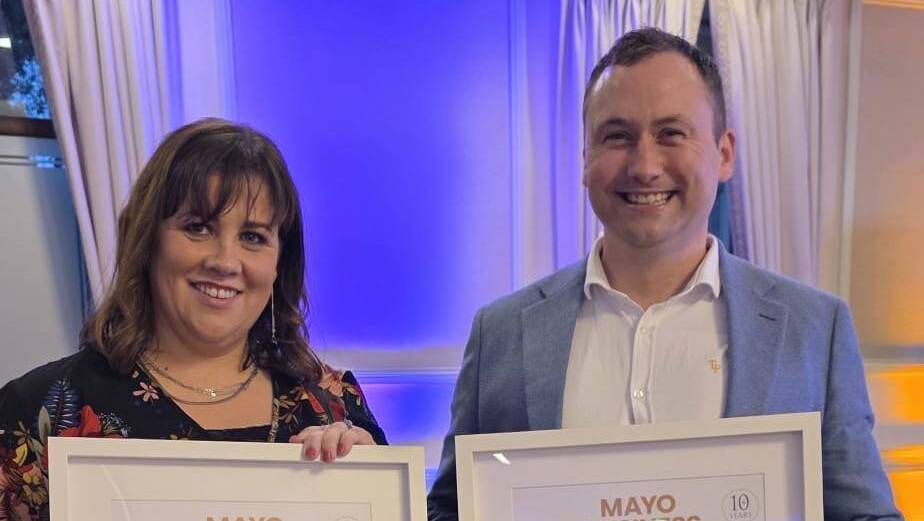 Pictured at the recent Mayo Business Awards Ceremony in Claremorris, Ballintubber Award Winners, Suellen McKenna Manager Ballintubber Abbey Trust and Seanie Hayes, Director of Hayes Mechanical and Engineering.