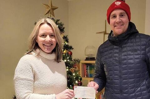 Stephen Walsh, Moy Davitts GAA's Healthy Club Officer, presenting Orla Gillespie, manager at Mayo Cancer Support, a cheque for €825 which was the proceeds from the club's hugely successful St Stephen’s Day Charity Match. All proceeds will support the delivery of vital emotional support services to people in the Mayo area who have been affected by a cancer diagnosis or bereavement.