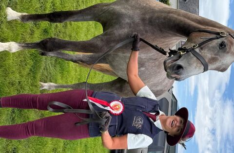 Mary Murphy, Castle Gate Stud, Swinford, with her beautiful 2year old Irish Draft filly 'Molly' who took 1st prize at the Louisburgh Horse Show 2025. Photo Connie cullen.