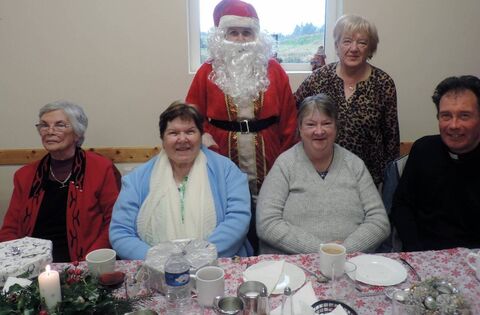Pictured at the Kilmovee Active Age Christmas Party were, front row, from left: May Clancy, Eileen Keegan, Mary McManus and Fr Joseph Gavigan PP with Mary Teresa Duffy with Santa in the back row. Picture: James Hunt Photography