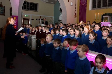 At the Roundfort, Robeen and Carras Parish Carol service held at Roundfort Church, was the Junior Children's Choir being led by Robeen N.S. teacher Mary Wanas and also pictured is parish priest Fr Mike Murphy. Picture: Trish Forde