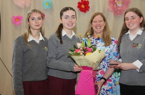 Members of the Student Council at Mount St Michael Secondary School presented Ms Nora Power with flowers on the occasion of her retirement. Picture: Trish Forde