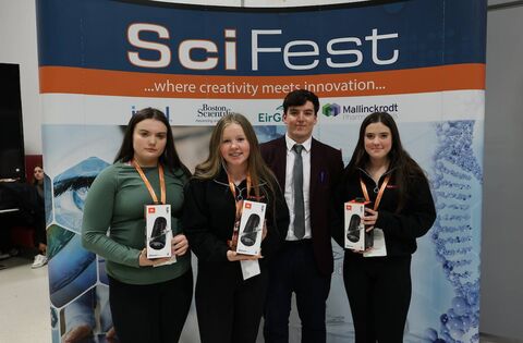 Three innovative teenage girls from Mount Saint Michael Secondary School in Claremorris have created an app designed to help parents, teachers, and young children learn Irish Sign Language (ISL). The app created by Alicia Ward, Aoibhinn Jennings and Mary Josephine Ward addresses a critical gap in specialised education settings and training for teaching children who use ISL. The project earned them the prestigious title of runners-up in the Junior Technology category at SciFest@Teen-Turn. The trio, participants in Teen-Turn’s afterschool Project Squad programme in Mount Saint Michael, embarked on this journey under the mentorship of their teacher, Stephanie Hogan. They are pictured with Dr Glenn Curtin, from The Digital Hub.