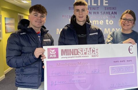 You might recall that Cormac Ó Muirithe and James O’Donnell from Belmullet last November took on the challenge of running 5km every day that month to raise funds for Mindspace. Their efforts raised over €5,000 and recently they called into the office in Castlebar to present the cheque and get a tour of the building. ‘To Cormac and James, thank you both so much for this fantastic undertaking, for raising much needed funds for our service and also for spreading the word about Mindspace and the work we do’, said a spokesperson.Mindspace operates a Belmullet outreach service every Tuesday - just give them a call on 094 906 7001 for more information.