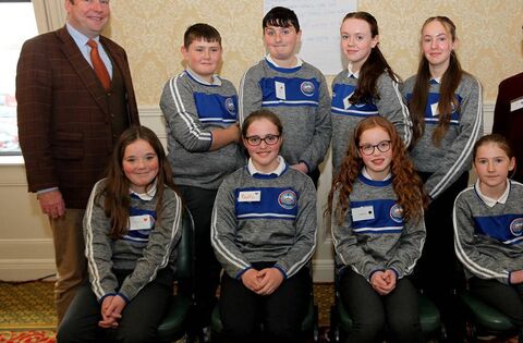 Pictured at the Mayo Comhairle na nÓg Youth Conference were students from St Brendan's College, Belmullet, with their teacher Howard Treacy. Picture: Trish Forde
