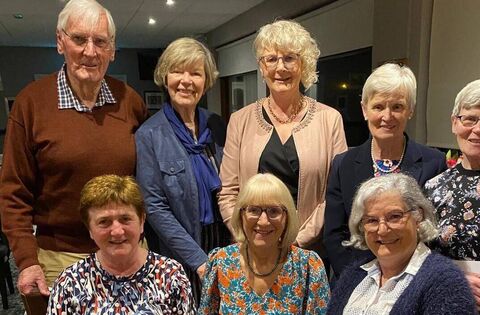 Winners of the Enniscrone Bridge Club President's Prize were seated; Mary Flynn winner, Christine Kirby Club President, and Marion Flynn winner. Back row: Walter and Laura Doherty 2nd, Agnes Moran 3rd, Helena Moran and Pauline Tierney 4th and missing from photo is Halogue Malone 3rd.