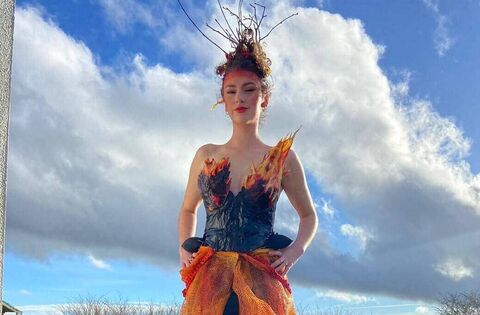 Kate Hannan, a transition year student from Jesus and Mary Secondary School, Enniscrone, who with her friend Caoimhe Hughes, has qualified for the regional finals of Junk Kouture with their creation 'Mother Demented'.