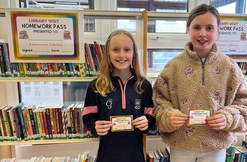 Clodagh Connor and Rebecca McSharry, students from Scoil Chríost Ri, Enniscrone, were delighted to secure the coveted homework passes for Enniscrone Library. It is the golden ticket for children in Enniscrone.