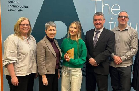 Congratulations to Amy Egan, Class of 2025, Jesus and Mary Secondary School who was awarded an Entrance Scholarship Award in recognition fo her exceptional Leaving Certificate results achieving over 600 points. Amy is now studying Pharmacy at ATU, Sligo and is pictured with principal Ms Hamilton and Dr Orla Flynn, President of ATU.
