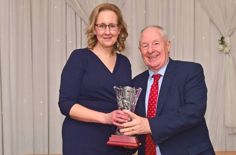 Kiltimagh-Knock United club member Deirdre Kelly, who also served as PRO of the Mayo Women's League, received the Appreciation Award from special guest Michael Ring at the Mayo Women's Football League's annual presentation dinner held recently at Breaffy House Hotel. Picture: Conor McKeown