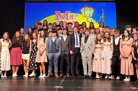The cast and crew of 'Me and My Girl', the musical successfully staged by the Transition Year students of St Joseph's Secondary School. They are pictured with Senator Mark Duffy who was among the hundreds who attended across the three nights of the production at Foxford Sports and Leisure Centre.