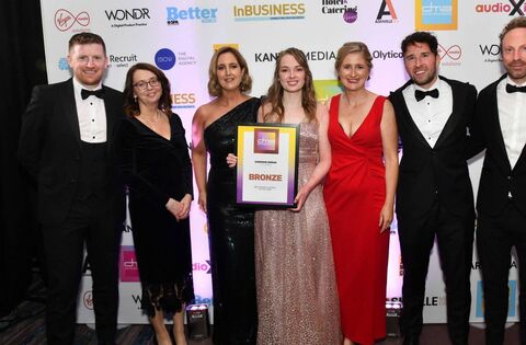 Caoimhe Horan, from Balla and a recent graduate of the BBs (Hons) in Digital Marketing at TUS Athlone Campus, was awarded the the bronze ‘Digital Student of the Year’ at this year’s Digital Media Awards (DMAs) in Dublin on Friday, September 29 last for her final-year live capstone project which saw her devise and implement a digital marketing strategy for Pax Whole Foods & Eco Goods (Retail). Pictured (L to R) Eugene Phelan, digital marketing lecturer; Dr Alison Sheridan, head of the Department of Business and Management; Aisling Keenan, digital marketing lecturer; Caoimhe Horan, bronze winner of ‘Digital Student of the Year’ and TUS Athlone Campus digital marketing student; Louise Murray, senior lecturer; Daniel Seery, digital marketing lecturer; Tom O'Donoghue, lecturer. Pic; Paul Sherwood Photographer.