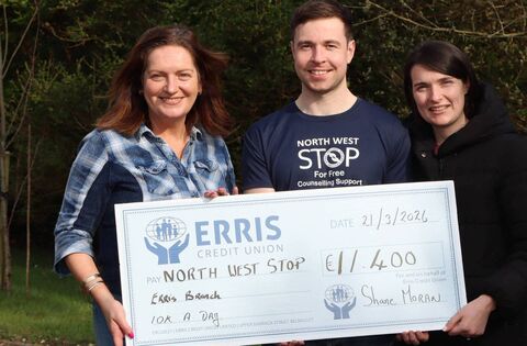"This free, confidential counselling service is a vital part of what the centre supports," Lally stated during the presentation. "Every penny raised in Erris goes directly to therapy hours in our community, with no expenses - just direct counselling for those who require it."