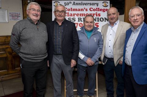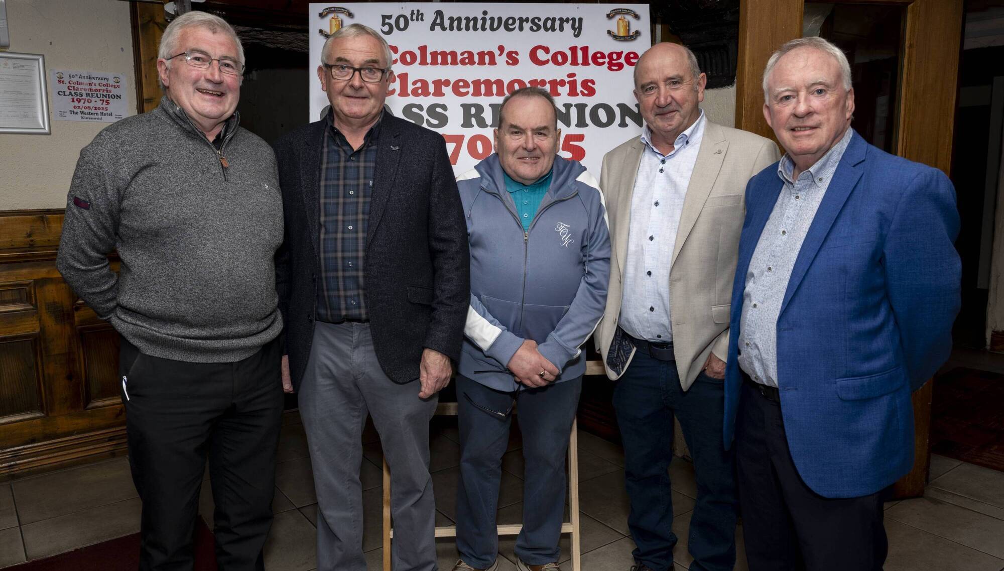 Enjoying the golden jubilee reunion at St Colman's College in Claremorris were, from left: Fr Tommy Commins, Gerry Gill, Paul Waldron, Alec Morley and Michael Clarke. Picture: John Corless