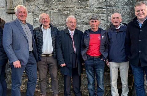 Among the large attendance at the 50th Anniversary Mass of Moy Davitts GAA Club which was celebrated at St Michael’s Church in Foxford on Friday evening were, from left: Anthony Ruane, Paddy Roache, Cathal Hennelly, John Gilmore, Jimmy Roache and Joe Doherty.