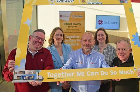 Hollister has announced a new partnership with Mayo Roscommon Hospice Foundation and the Sunflower Children's Hospice, the first children's hospice serving the Western Seaboard. As a part of this partnership, Hollister Incorporated has committed to a monthly employee fundraising draw, alongside a series of as ad hoc fundraising initiatives over the next three years. Pictured from Hollister are Cole Langdon, Pauline Burns, Shane Caher, Mari Mahon and Pat Carr. Photo Conor McKeown