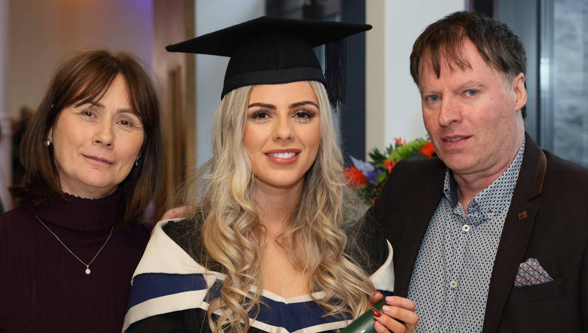 Dannielle Chambers from Castlebar, who received her Bachelor of Science (Honours) in Psychiatric Nursing, with her parents Valerie and Peter, at the conferring of awards by ATU Mayo at St Mary’s Hall in the Castlebar campus. Picture: Mike Shaughnessy