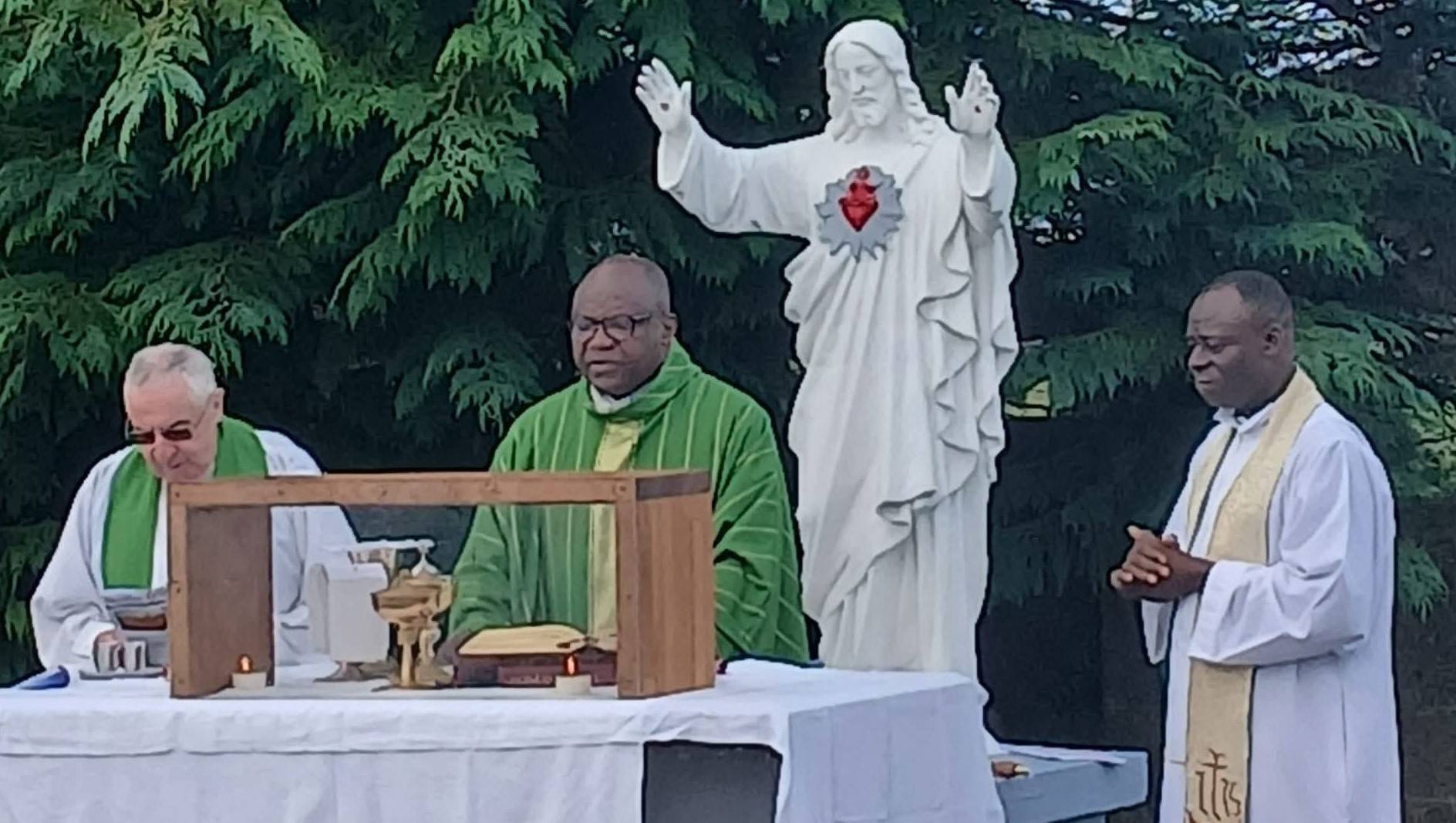Fr Victor (centre) Fr Clement (right) and Fr Feeney (left) who celebrated Mass in Meelick Cemetery on Sunday, August 3. A warm welcome to the parish is extended to Fr Clement and best wishes to Fr Victor in his upcoming appointment as Administrator of the parish of Carracastle.