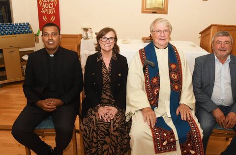 Mass of Thanksgiving for Fr Steve Gibson at the Fr Peyton Centre, Attymass, Co Mayo with Fr Valarian Castelino Exec Director Fr Peyton Centre, Mags Downey Martin, Manager Fr Peyton Centre, Fr Steve Gibson and Noel Howley. Picture: John O'Grady.