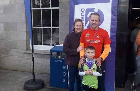 Mariosa, Michael and Cillian Corcoran pictured at the RDS on registration day for Michael’s recent run in the Dublin City Marathon in aid of the Irish Cancer Society