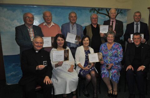 Pictured at the annual Mid-Killala Pioneer social in Hiney’s Upper Deck after a lapse of three years due to Covid-19 are the recipients of their gold pins. Back from left to right Sean McDonnell (Kilmurry Centre), Reggie Duffy (Crossmolina Centre), Eddie McHale (Rathduff Centre), John Howley (Crossmolina Centre), Tom Hanahoe (Kilmurry Centre), Thomas Jordan (Crossmolina Centre). Seated from left; Fr Eddie Rogan (Ballina Centre), Meave Tierney (Crossmolina Centre), Christina Healy (Killala Centre), Mary Jordan (Crossmolina Centre), and Fr Pat Munnelly (Mid-Killala Pioneers Spiritual Director).