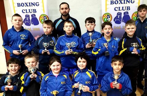 Members of Knockmore/Foxford Boxing Club who recently received gratitude awards in recognition of their fundraising efforts. Front row, from left: Cayden Murray, Kevin Spellman, Ciara Hughes, Donnacha Goggins and Benjamin Garvin. Middle row, from left: Kaiden Hardy, Martin Lawrence, Alexander Domagala, Charlie Hughes, Se Dempsey, Shane Macken and Joshua Garvin. Back row, from left: Joseph Hannon (coach) and Cian Hannigan. Absent were Jonah Gallagher, Pearse Lawless, Lorcan and Warren Ryder.