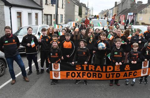 Members of Straide and Foxford United are pictured taking part in the St Patrick's Day Parade in Foxford. Picture: John O'Grady