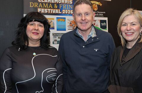 Daiva Budziuvienne pictured with Jimmy and Pauline Flynn (sponsors) at the opening night of the Claremorris Drama and Fringe Festival which was staged in the Town Hall Theatre, Claremorris. Picture: Michael Donnelly