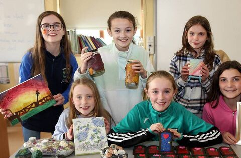 Enjoying the Harvest Fair at Roundfort National School were pupils with their art and craft work. Front row, from left: Grace Feerick, Saoirse Hanrahan, Grace Walsh. Back row: Michaela Colleran, Errin Jade Culleton, Esmai O'Leary. Picture: Trish Forde
