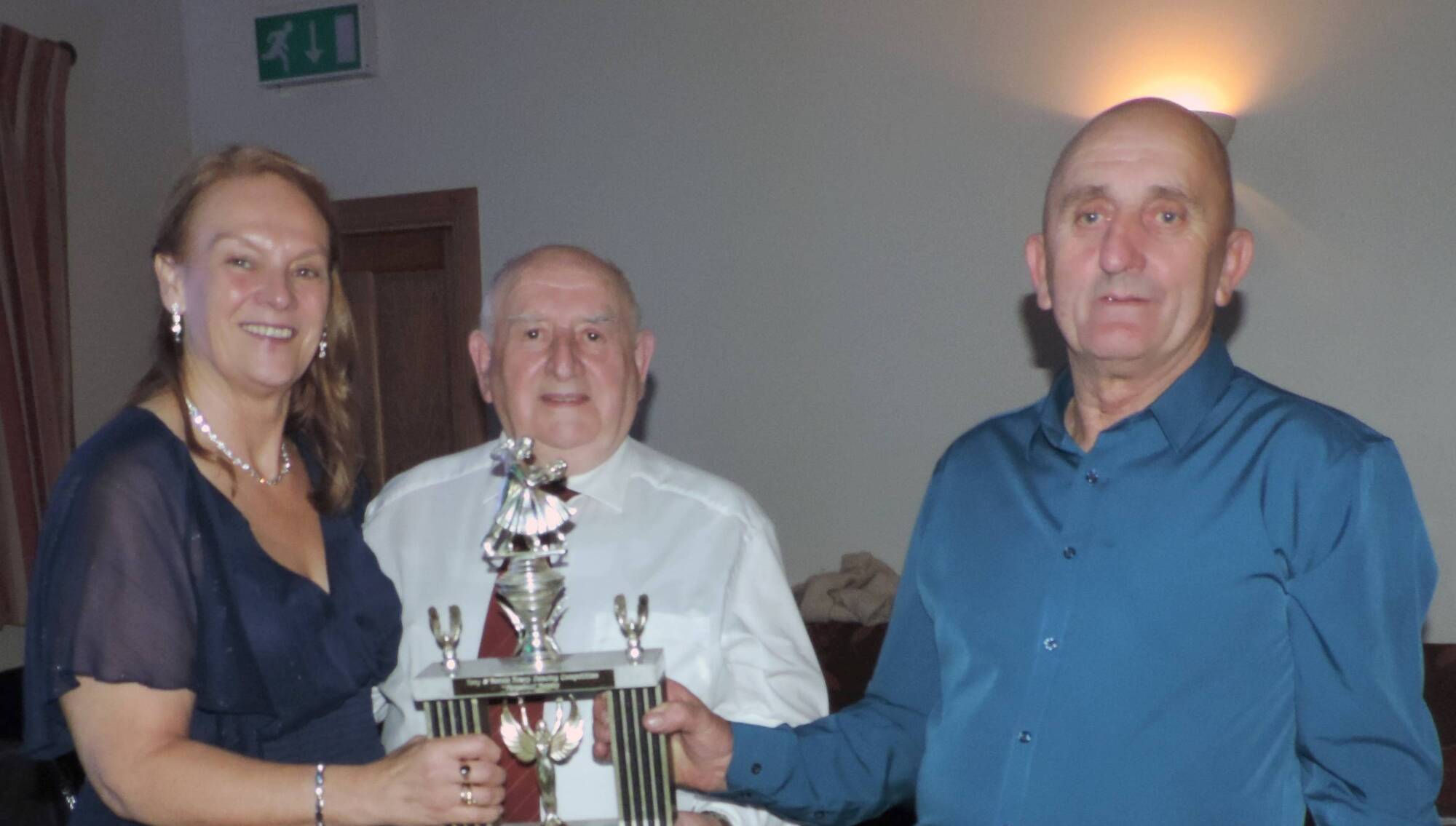 At the Tony and Bernie Towey Dance Competition in the Brusna Inn were the winners of the slow waltz Collette Hyland and Ray Noble being presented with their trophy by John Mulkeen (sponsor of the trophy). Pic; James Hunt Photography.