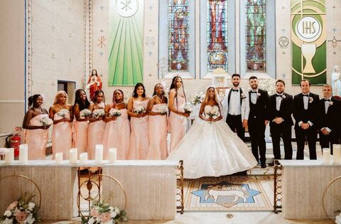 The wedding party included Maid of Honour Anna Ndiwera, bridesmaids Abby Mubea (sister of the bride), Christelle Da Gama, Debbie Emmanuel, Tracy Nakawooya, Gloria Nankya, Tvesha Patil, Renike Sonuyi and Sabrina Souza, Best Man Kevin Armstrong (brother of the groom), groomsmen Trevor Crawley, Aaron Hanlon, Padraig Murphy and Shane Quinn.