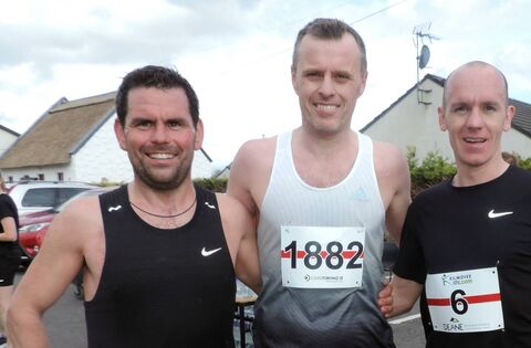 Winners of the Kilmovee 10k are from left; Sean McLoughlin Westport A/C 2nd place; Ray Hynes Mullingar 1st place winner of 10k and Anthony Murray, Westport a/c 3rd place. Pic James Hunt Photography.