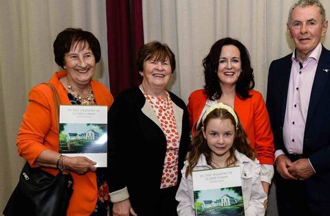 Attending the launch of 'In the Shadow of Sliabh Gamh -South Sligo' were Theresa Owens (née Walsh), Margaret Walsh, Eithne Devins (née Walsh), James McGuinn (author), and in front Phoebe Devins.